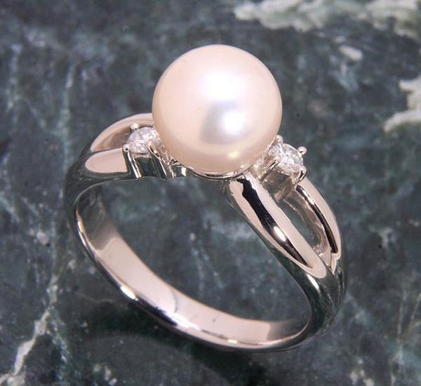 - 《質屋出品》Pt900★アコヤ真珠+ダイアデザインリング★C-2969