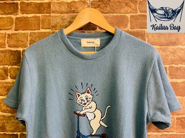 > ★表記M/新品!パイル地.Kailua Bay.猫.タオル地.キャラクタープリントTシャツ.アメカジスケボーサーファー.西海岸カリフォルニアスタイル