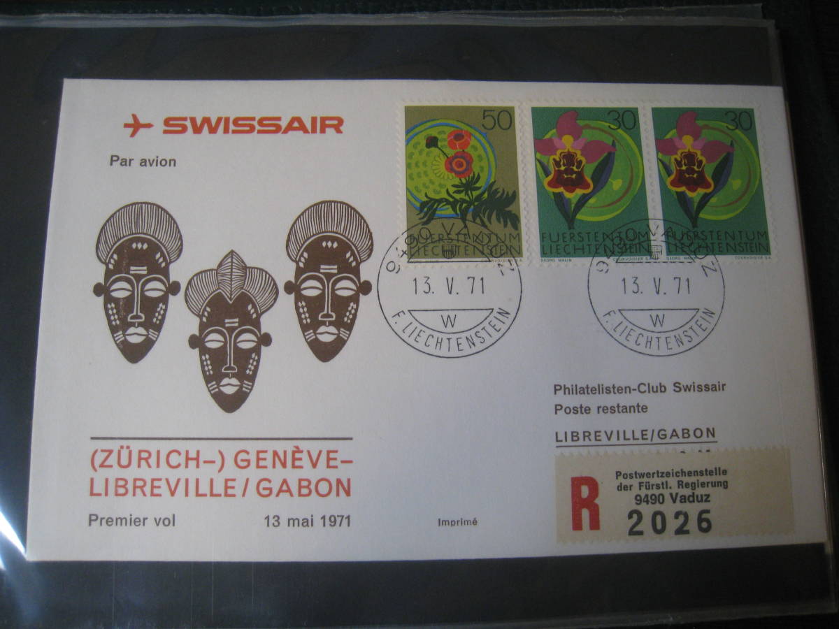 - ★F043 FDC/FFC初日カバー1971 スイス航空 ジュネーブ - リーブルヴィル -
