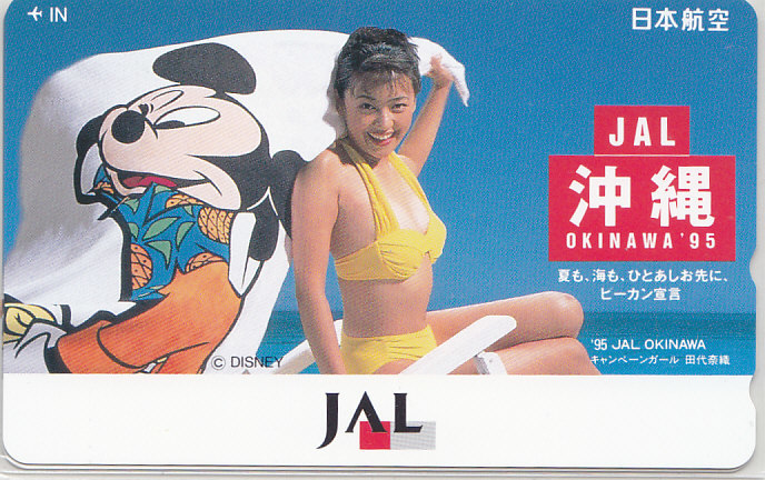 - 田代奈織 JAL沖縄 '95/ビキニ水着 ディズニー【テレカ】 R2.8.17 ★送料最安60円~