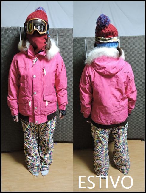 - 【ESTIVO】エスティボ レディース/女の子 160cm?スノーボードウエア、スキーウエア 上下セット Mサイズ 9号 ピンク チェック 中古 ウェア