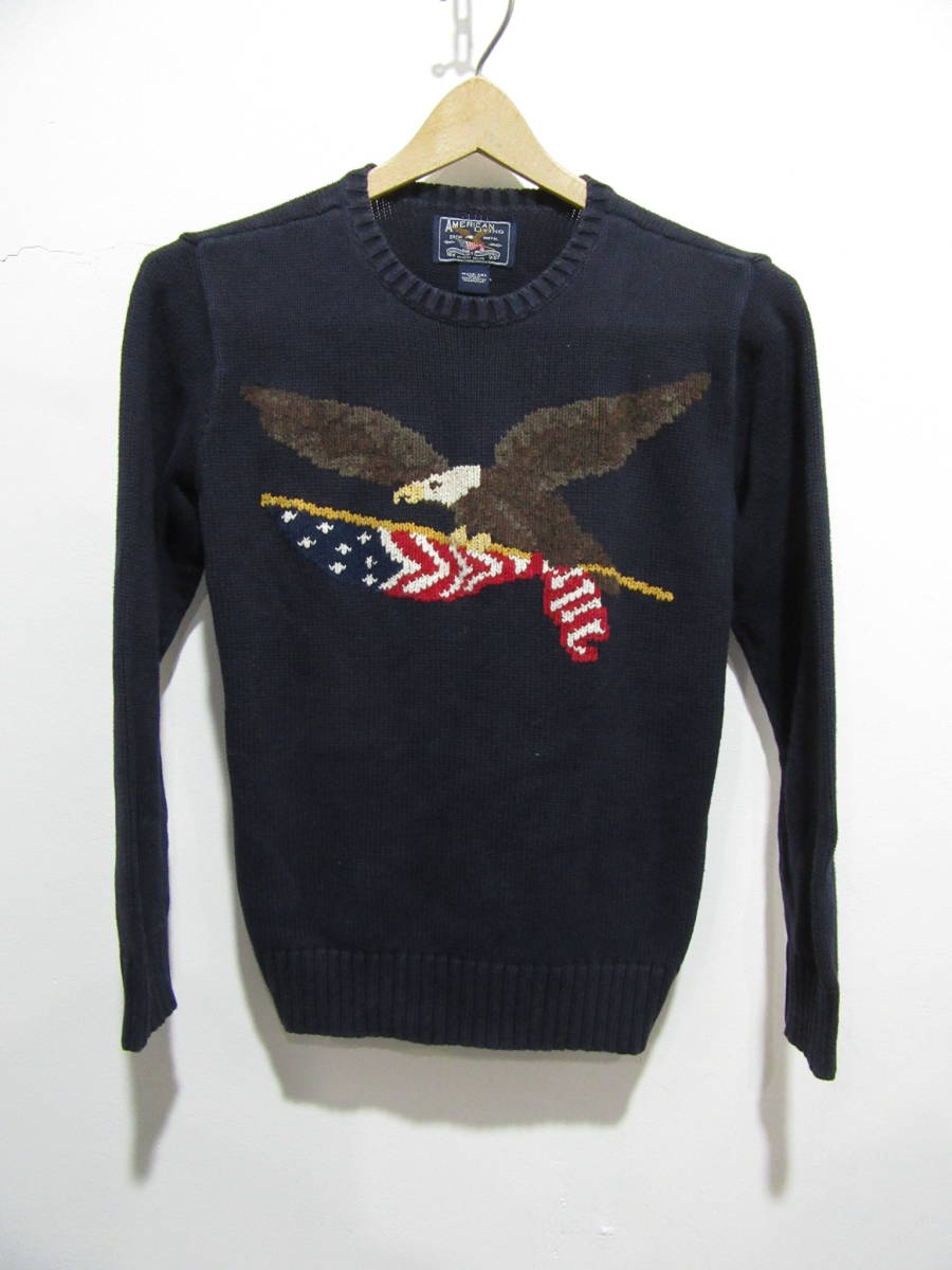 - ☆送料無料☆American Living☆アメリカンリビング☆イーグル&星条旗デザインコットンニットセーター☆レディースXS相当☆J20