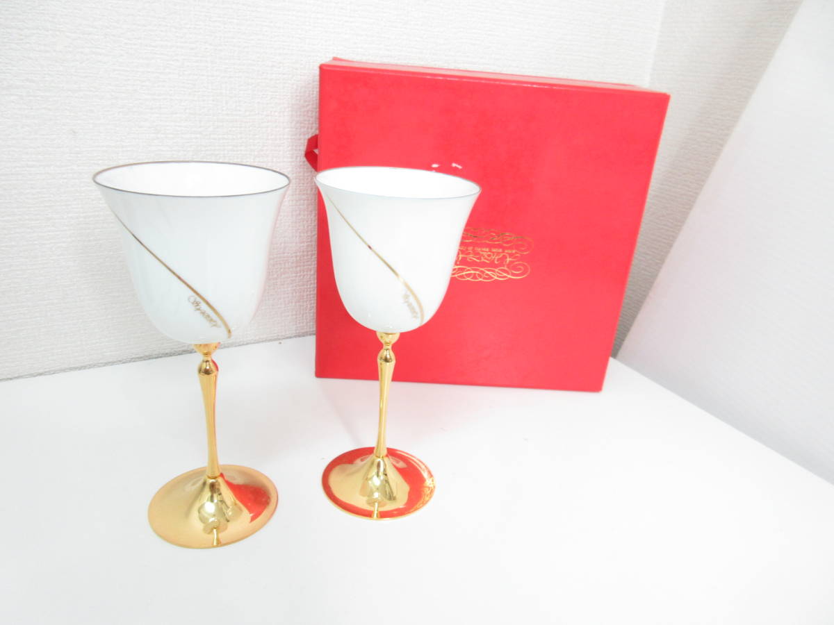> ◆KURIYAMA クリヤマ シルフィー ワイングラス シャンパングラス ペアグラス 2客セット ホワイト ゴールド 未使用品 管理2009 R-13
