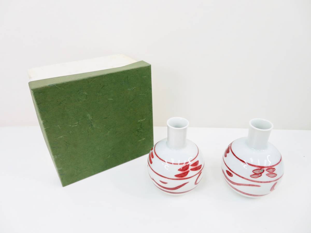 > 未使用品◆朝日 朝日焼 釈裏紅 徳利 2客セット 酒器 酒 熱燗 冷酒 祝日 正月 伝統 工芸品 管理2011 Y-2