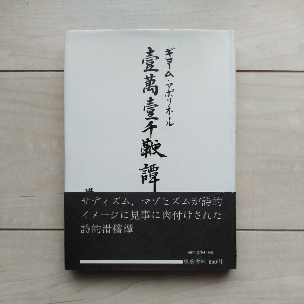 - ■『壹萬壹千鞭譚』Guillame Apollinire著。學藝書林編集部訳。昭和47年初版カバー帯。學藝書林刊。★帯背に曰くサドをも凌ぐ会心作。