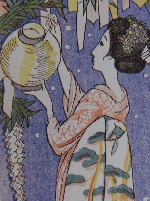 - 竹久夢二、【『婦人グラフ』挿絵 星合】、希少な大判額装用画集より、美品、新品額装付、送料込み