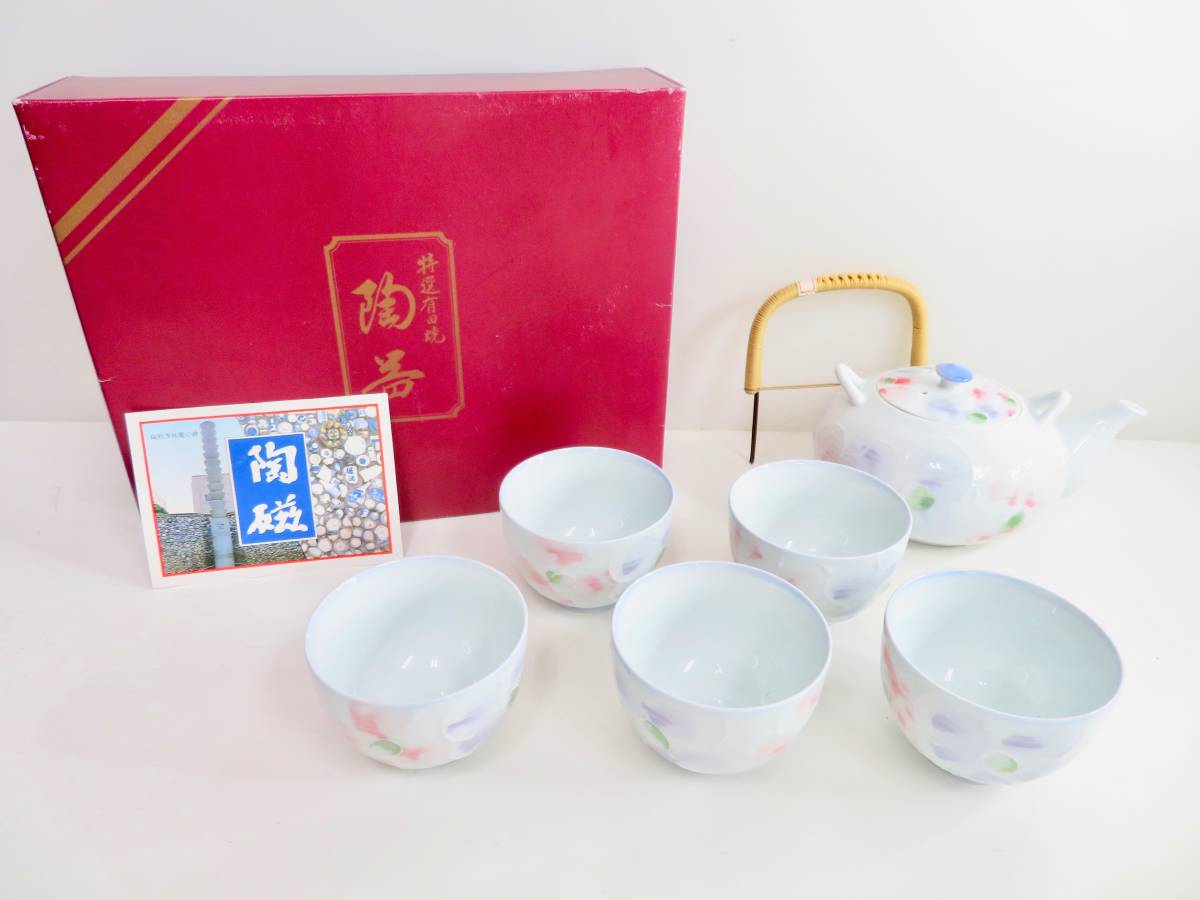 - ◆有田焼 茶器揃 春花 茶器セット 花柄 6客セット 急須 湯呑 セット 同柄セット 取手付 箱付 伝統 工芸品 未使用品 管理2010 A-16