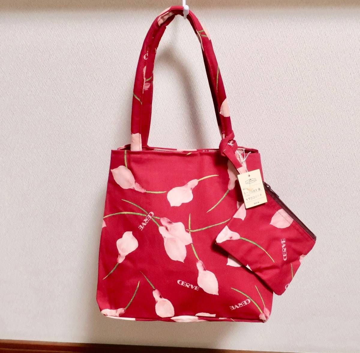 - CERVE/宮井《和風手提げバッグ》底幅広・濃ピンク色 ミニポーチ付き