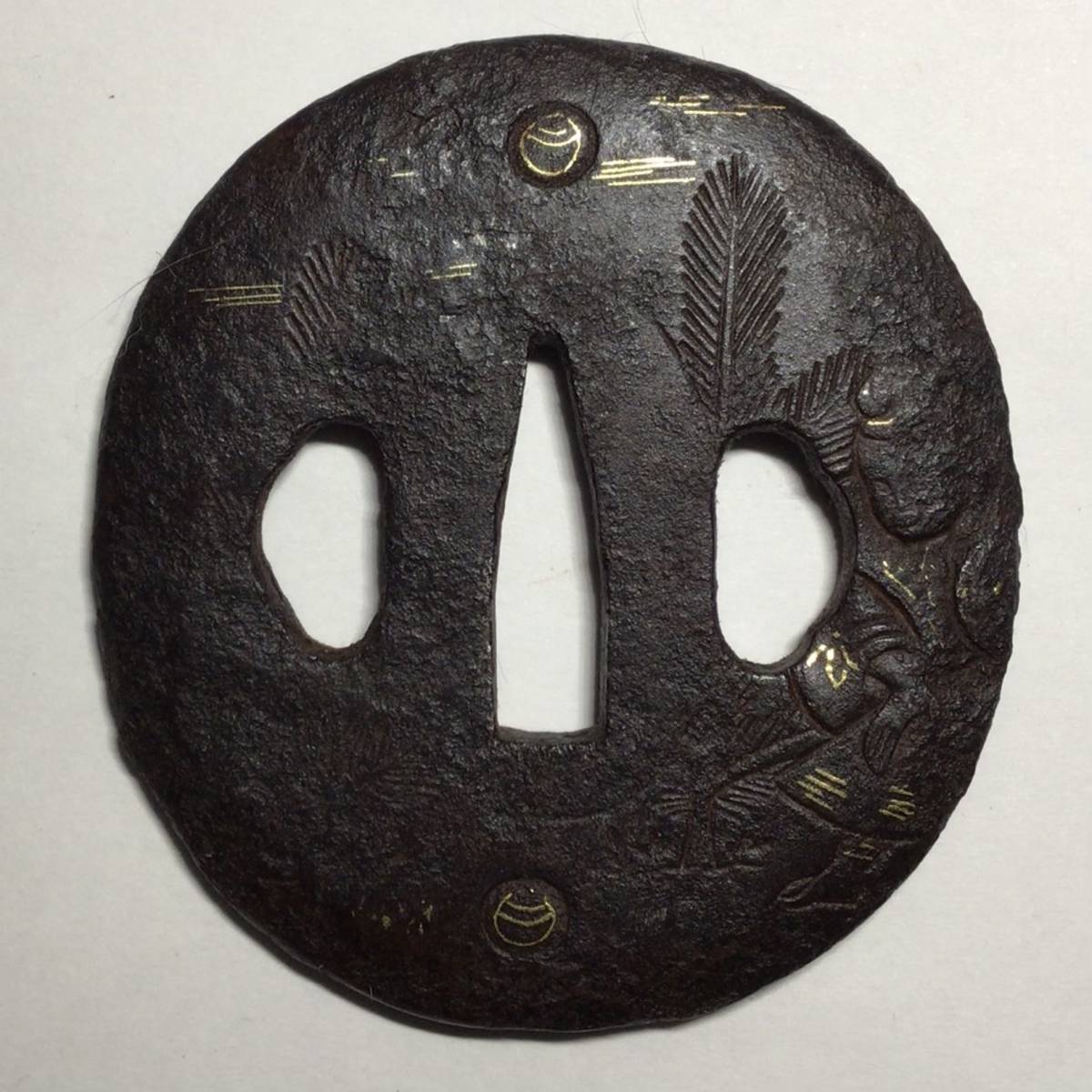 - 初だしの鍔 江戸時代 No.51 金象嵌 ☆ 刀剣小柄笄縁頭目貫鐔鎧甲冑兜脇差短刀刀子