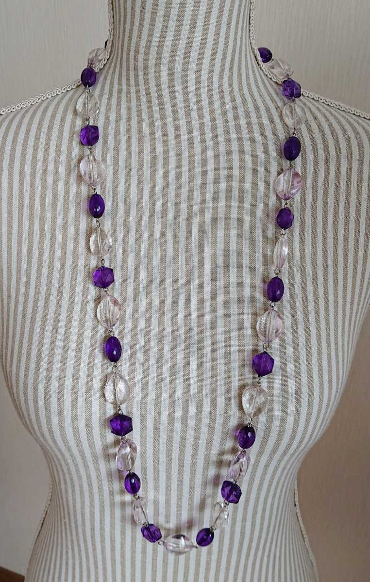 - □クリア―&パープルカラーのキラキラ多面カットMIXネックレス□