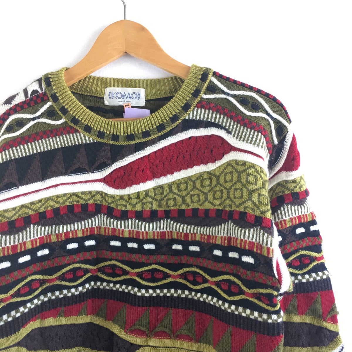 - ビンテージ 80s【ニット 3D編み】日本製 セーター 立体編み 総柄 古着 クレイジーカラー 90s 高級 アメカジ レディース クージー グランジ