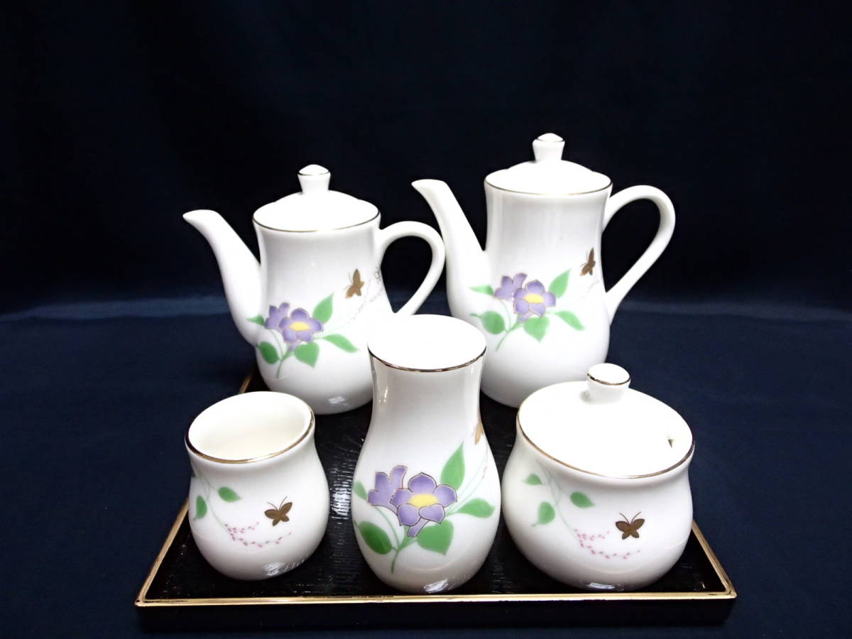 - 【卓上小物セット・・・5品】(磁器)【お盆付き】未使用・箱なし・美品