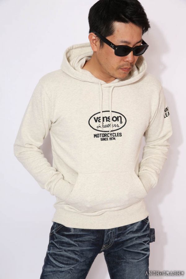 - 当店別注 VANSON 定番スター☆ プルオーバーパーカー オートミール【XXL】バンソン スタンダードサイズ ACVA-902 ハーレー 刺繍