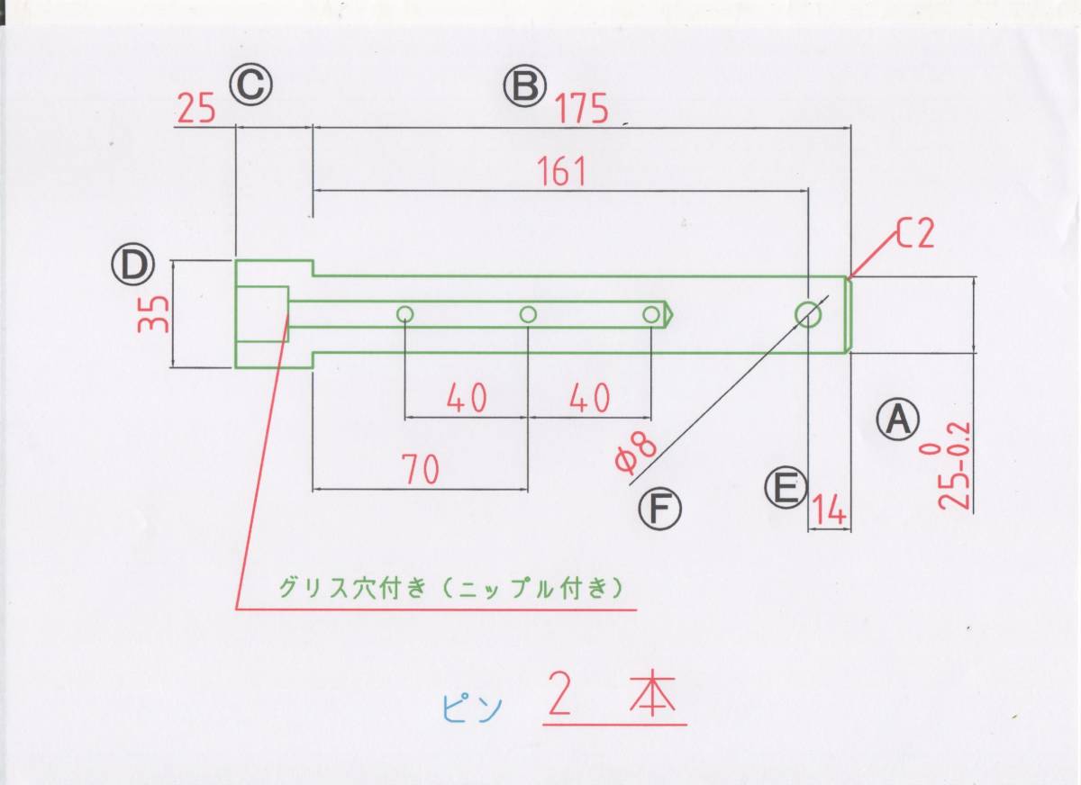 - NO 422 φ25用ツバ下175mm グリス穴2か所付きバケットピン 2本セット