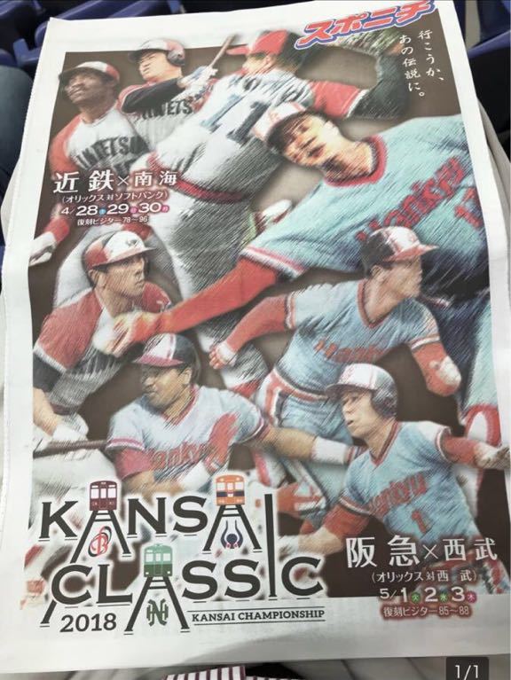 - 2018 阪急ブレーブス&近鉄バファローズ復刻 スポニチ特別号外 KANSAI CLASSIC 球場限定配布品 オリックスバファローズ