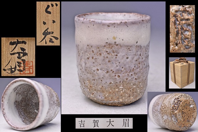 > 吉賀大眉 ★ 萩 白釉 立ぐい呑 ★ 共箱 栞 ★ 酒器 ★ 萩特有の長石がこそばゆい逸品 ★ 検 吉賀將夫 ★