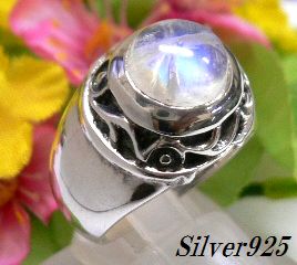 - シルバー925銀の天然石ムーンストーン付サークル アラベスク リング/17号.23号より