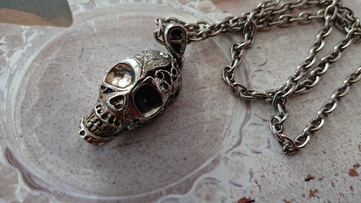 - □スカル&ラインストーンのシルバーカラーネックレス□