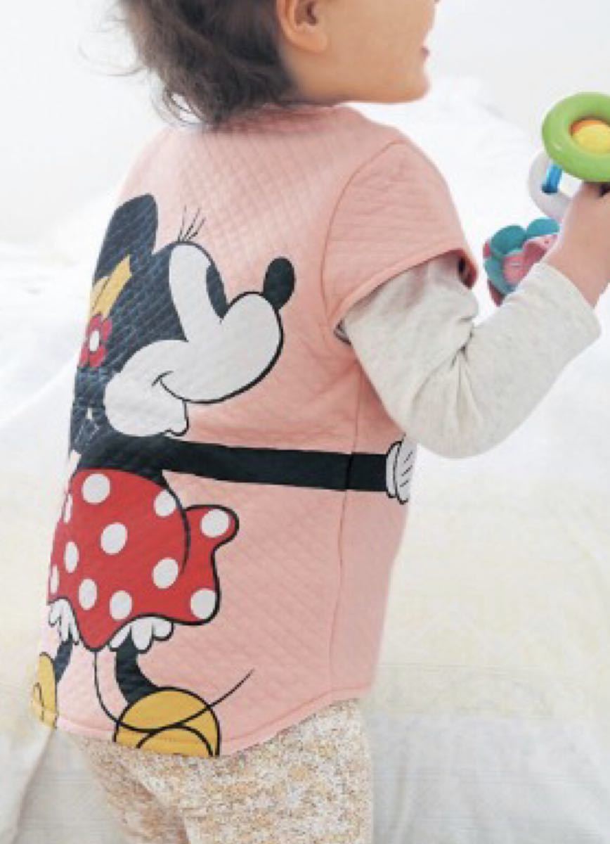 > ピンク ニットキルトベスト ディズニーキャラクター 抱きつきベスト 寝冷え対策 クーラー対策 スリーパー 90サイズ 2歳程度 Y001