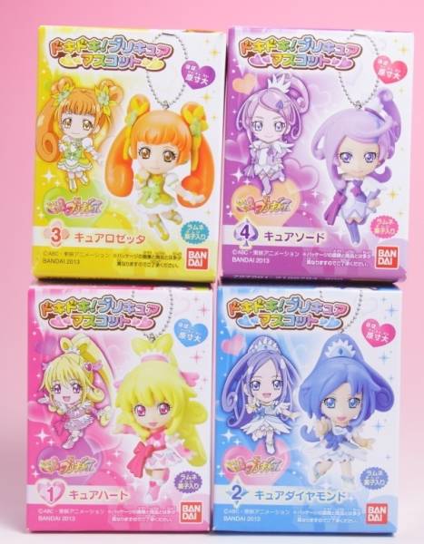 > 152◇ドキドキ!プリキュアマスコットセット フルコンプ 全4種 食玩 バンダイ ボールチェーン ストラップ 根付 ハート ソード ダイヤモンド