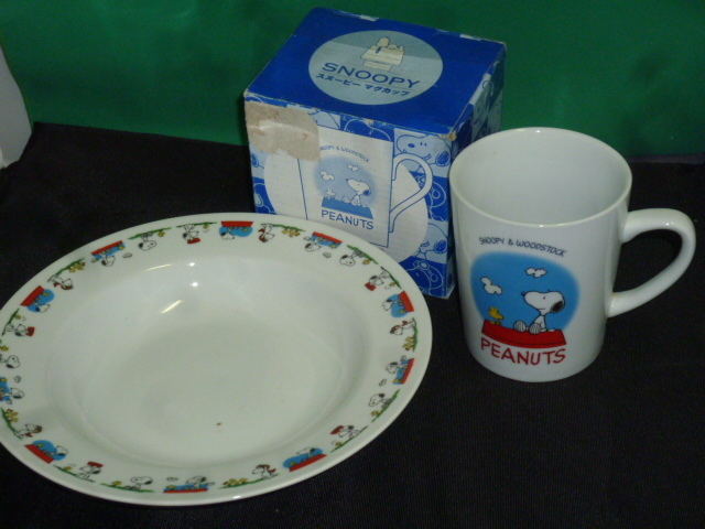 - b★未使用★SNOOPYスヌーピー&ウッドストック マグカップとプレート皿