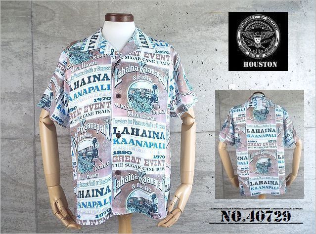 - 【送料無料 59%OFF】HOUSTON ヒューストン アロハシャツ ハワイアンシャツ 「TRAIN」柄 NO.40729 GRAY_Mサイズ