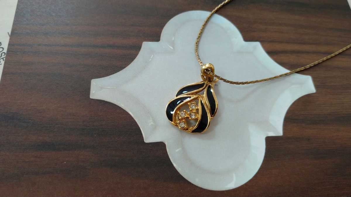 - □訳あり□抽象的モチーフのショートネックレス□黒×ゴールドカラー&ラインストーン□シックな印象□
