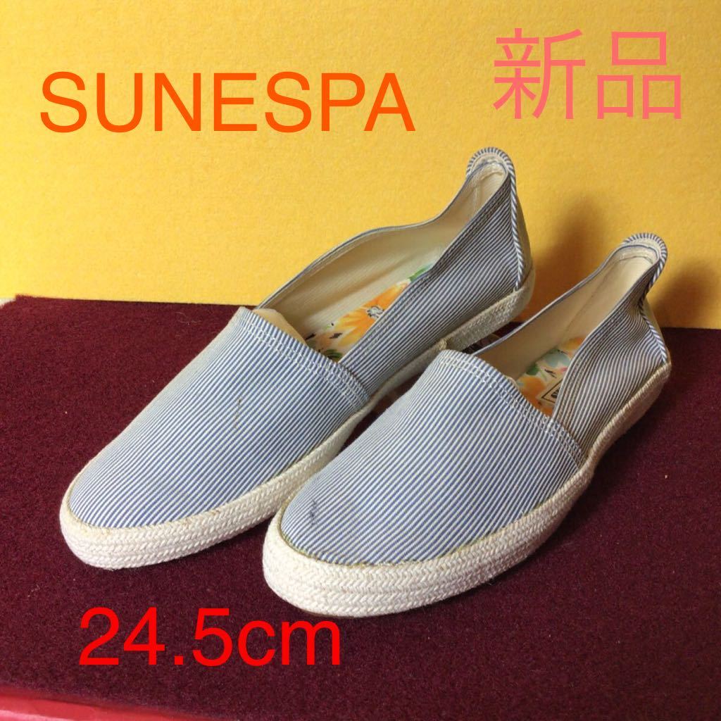 > 【売り切り!送料無料!】A-101 SUNESPA!24.5cm!スリッポン!ストライプ!花柄!古着!新品!未使用!