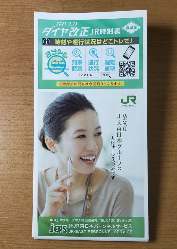 - ◆JR東日本◆宮城版 ポケット時刻 2021/03改正版