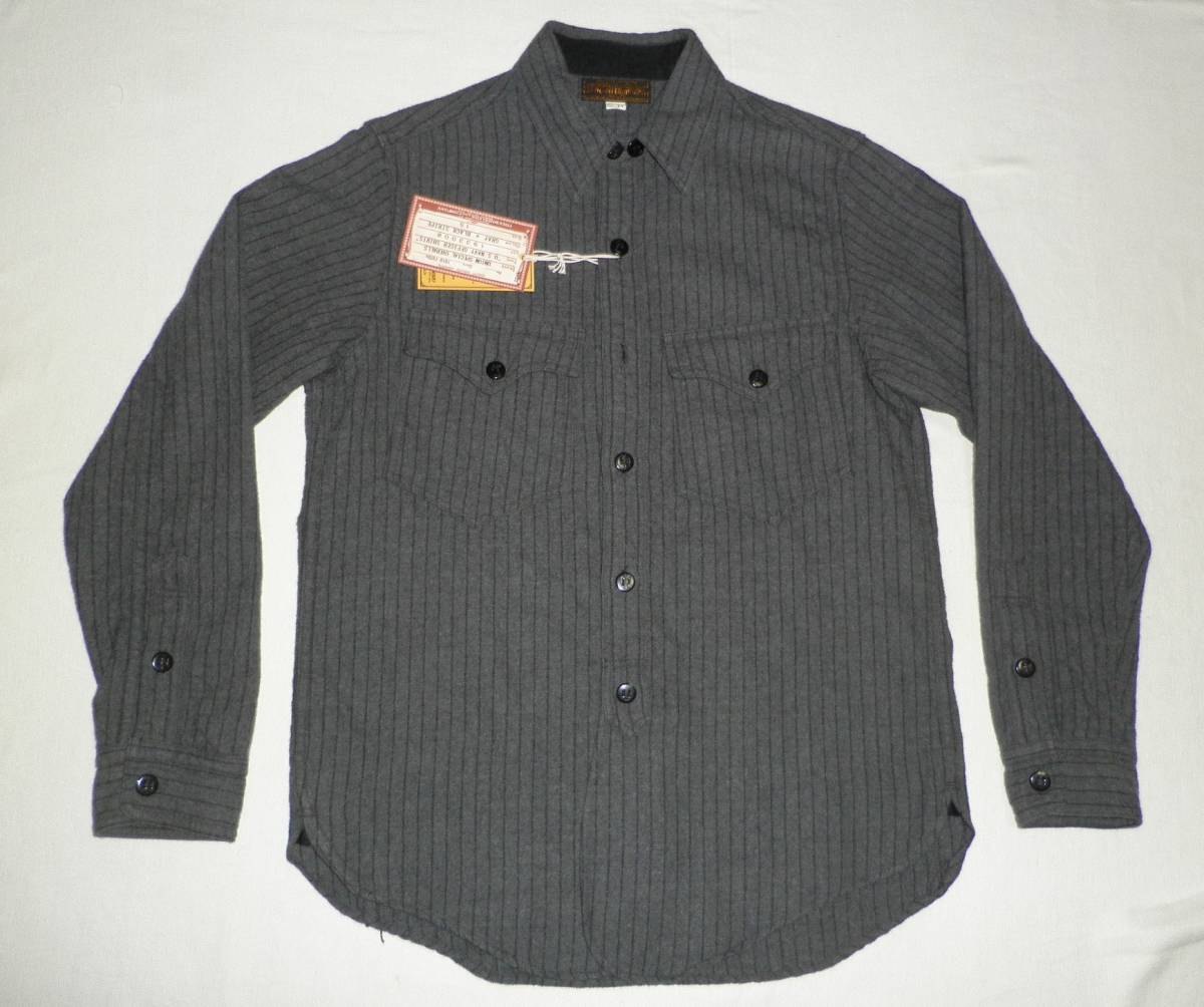 > ☆新品 フリーホイーラーズ “U.S.NAVY OFFICER SHIRTS” (15) コットンウール GRAY×BLACK STRIPE