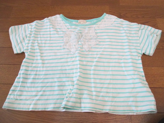 - 120 HUSH HUSH 半袖緑と白のボーダーリボン柄Tシャツ