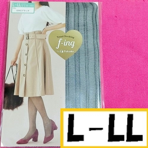 - 匿名★同梱歓迎【Z】★新品 fing タックストライプ L-LL ストッキング パンスト Fukuske ブラック