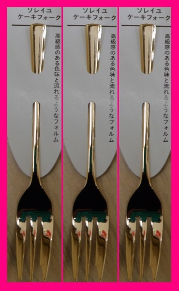 > 【送料無料:3本】★フォーク:ケーキ:日本製:ゴールド:高級感のある色味と流れるようなフォルム★金 金色 カトラリー 洋食 食器 ステンレス