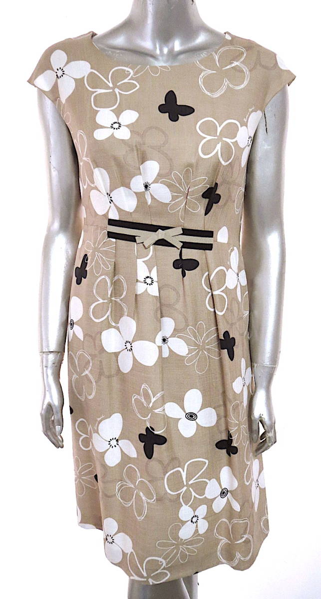 - 二点落札で送料無料! H40 HANAE MORI ハナエモリ ワンピース 40 ノースリーブ M レディース クリーニング済 ベージュ 花柄 ひざ丈 春 夏