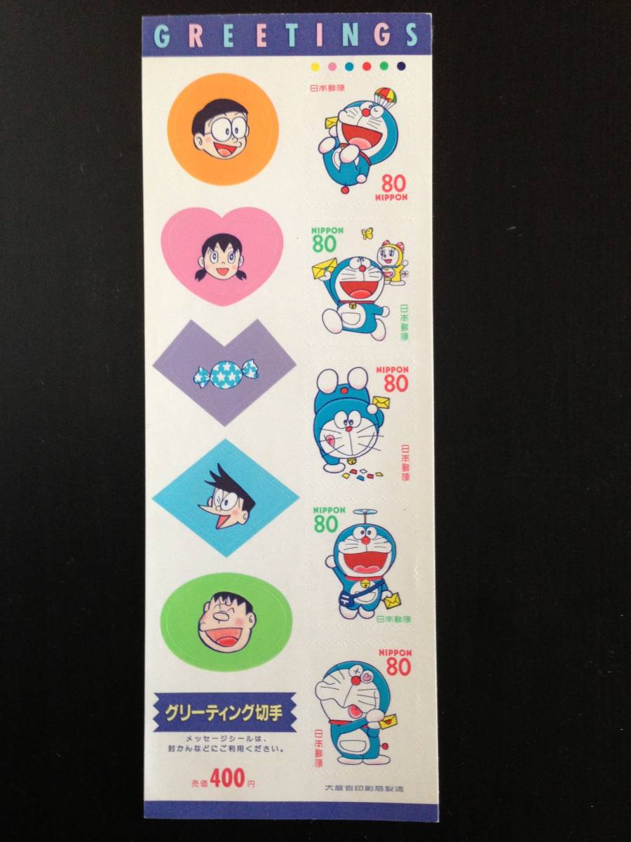 > ★未使用 ドラえもん 切手シート のび太 しずかちゃん スネオ ジャイアン グリーティング 80円 5枚 シール付き 日本郵便