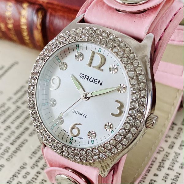 - 特別セール!!【高級時計グリュエン】Gruen クォーツ 腕時計 レディース ビンテージ ブレスレット カクテル ウォッチ クリスタル