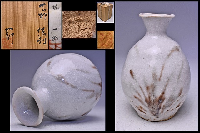 > 堀一郎 ★ 絵志野徳利 ★ 共箱共布栞 ★ 酒器 ★ 絵付 釉景に味わいのある逸品 ★師:人間国宝 加藤孝造 ★