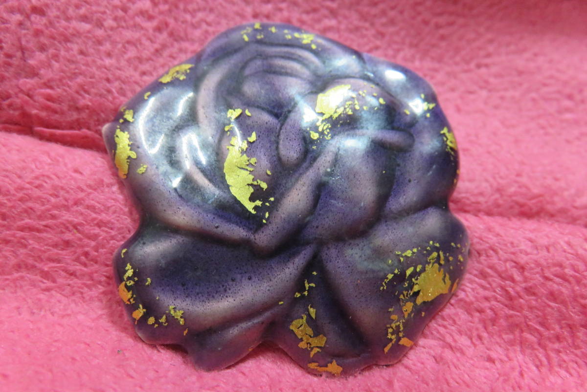 - T0940 ブローチ 七宝焼き 金箔 バラ 薔薇 ローズ