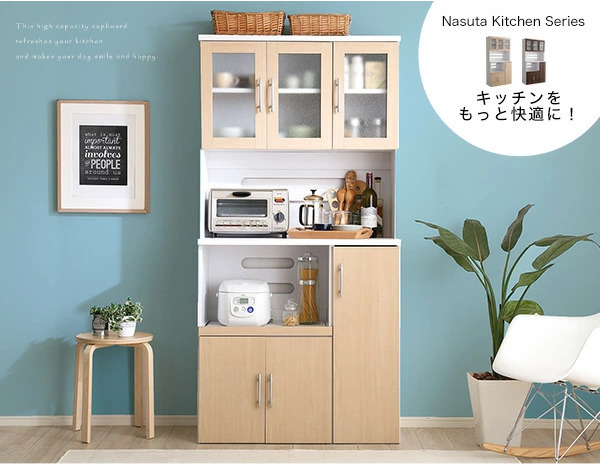- 【数量限定】食器棚 レンジ台 大容量 2口コンセント付き 90cm幅 キッチンボード オーク