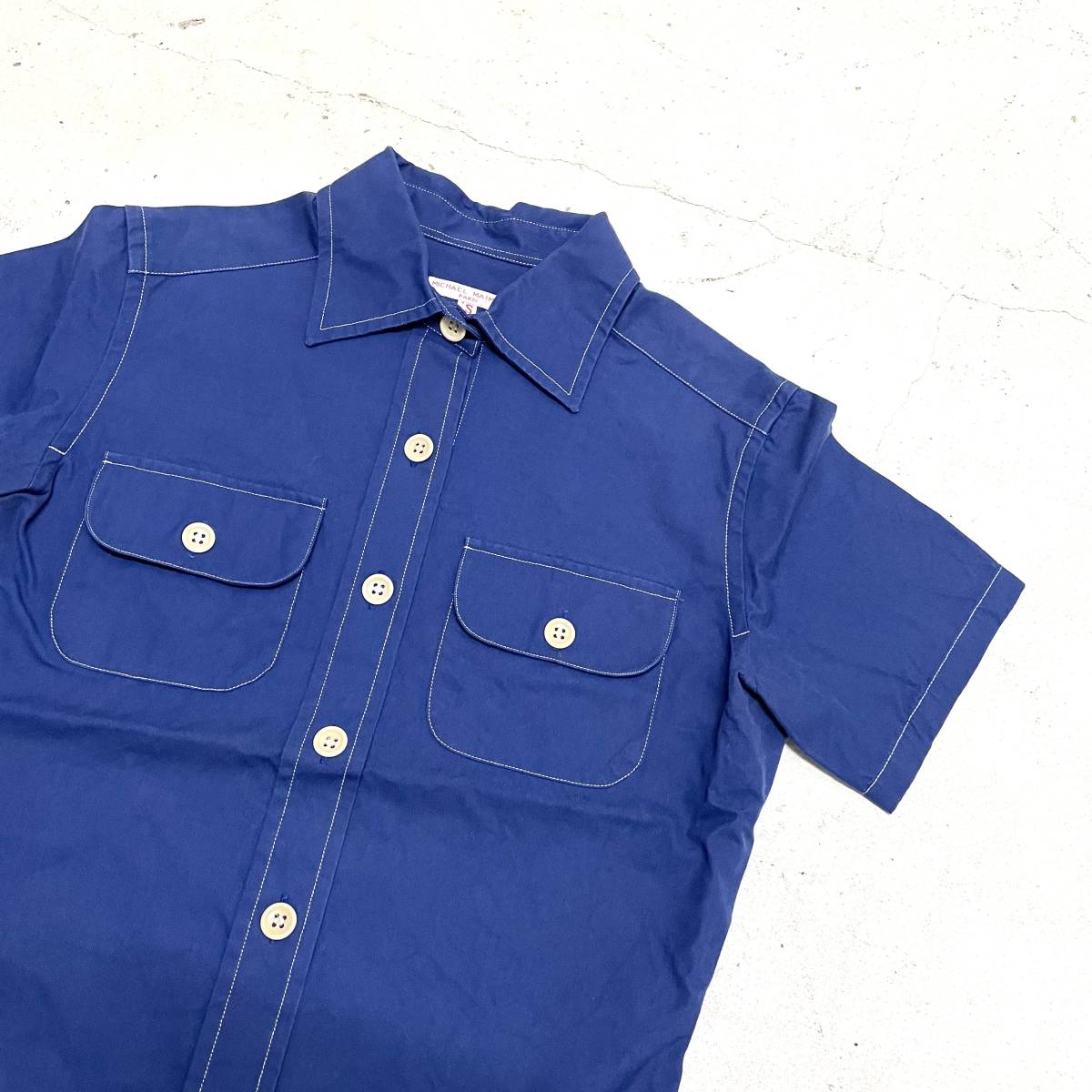 > MICHAEL MAIMAN PARIS 半袖 ワーク シャツ Sサイズ 青 ブルー コットン フランス製 ヨーロッパ ブランド古着 細身 ステッチ