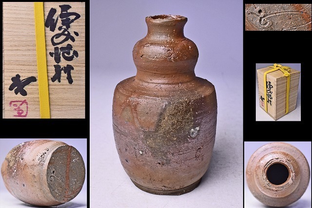 > 藤原啓 ★ 備前 徳利 ★ 共箱 ★ 人間国宝 ★ 深味のある緋襷に瓢の珍しい造形の特上の逸品 ★検 藤原雄 藤原和 ★
