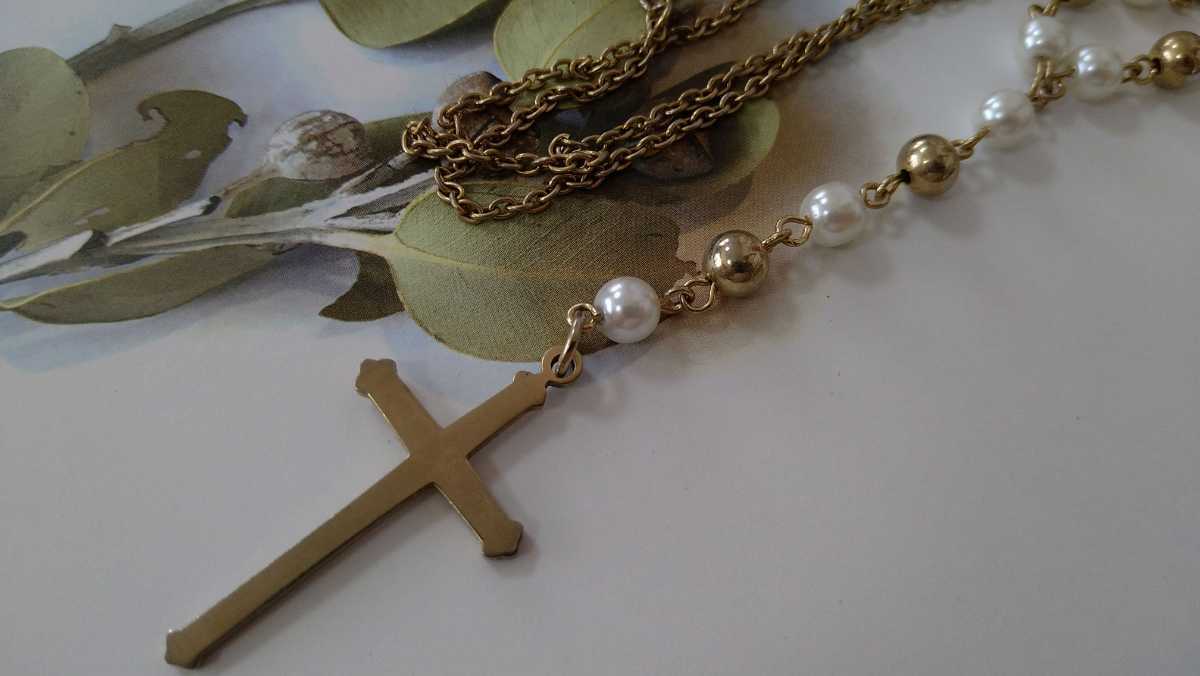 - □ゴールドカラー・クロスモチーフ&パールビーズ・ネックレス□