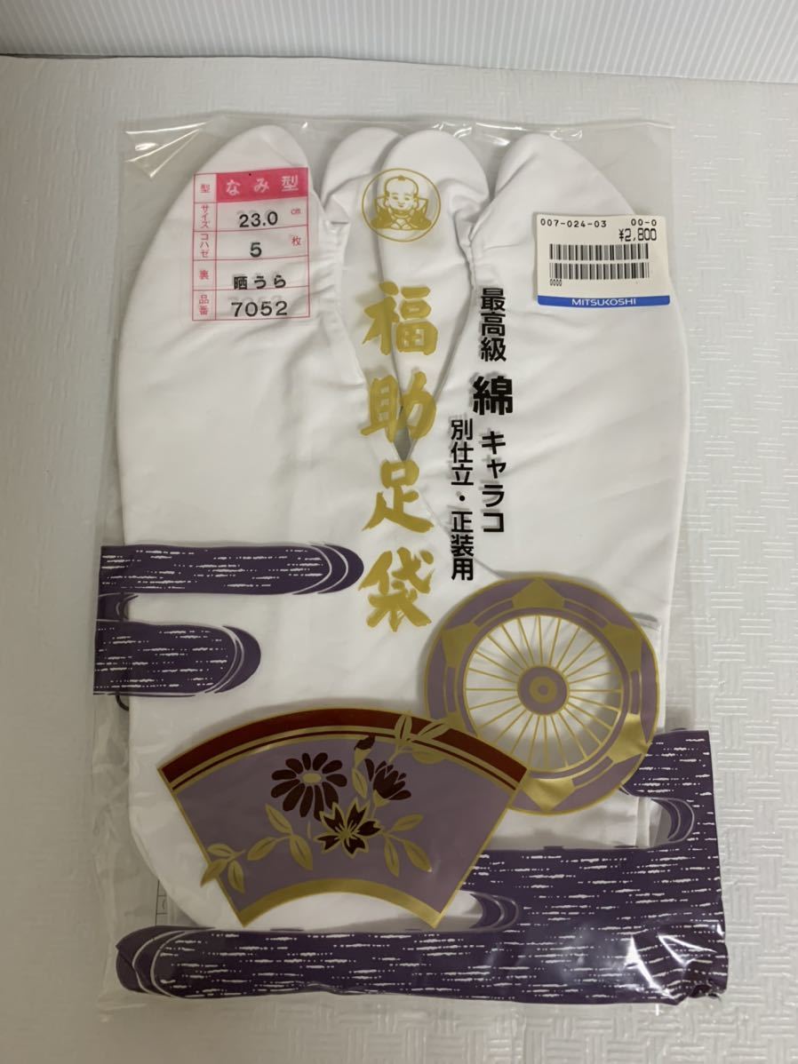 > 即決/未使用/福助足袋/最高級綿 キャラコ 別仕立 正装用/23cm/コハゼ 5枚/晒うら/型 なみ型/品番7052/綿100%/国産/梱包材経年