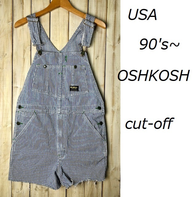 - USA古着 90s~ OSHKOSH カットオフ ヒッコリーオーバーオール 30 オールド アメリカ古着 オシュコシュ サロペット ワーク ●27