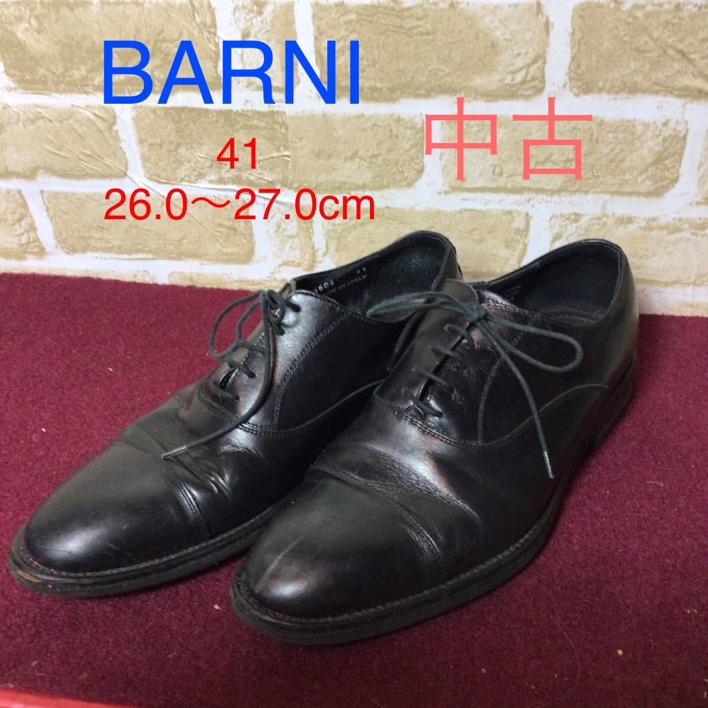 - 【売り切り!送料無料!】A-126 BARNI!41!26.0cm!27.0cm!ビジネスシューズ!ストレートチップ!プレーントゥ!レザーシューズ!ブラック!中古!