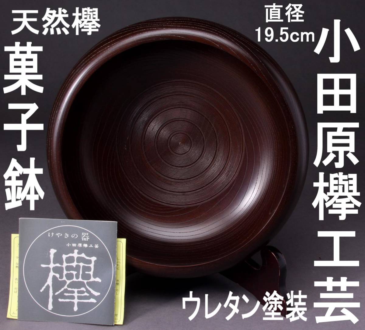 - 小田原欅工芸 菓子鉢 天然けやき ウレタン塗装 直径19.5㎝ 高さ9㎝ 850g 箱・しおり付き 中古 KA-7464