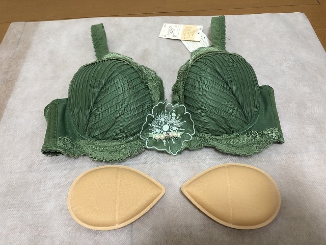 > 新品、ワコール、Lesiage【レシアージュ】のブラジャー★C70★6490円→2980円即決★パッド取り外し可能、Wacoal、グリーン色