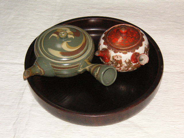 - 急須 大日本九谷 人物図 金彩 マーブル柄 2客 お盆