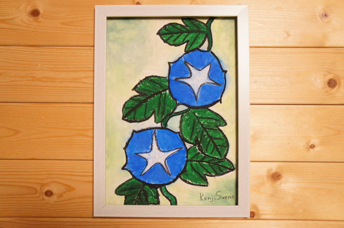 - 【朝顔】手描き 肉筆 クレヨン画 絵画 358,Crayon painting, oil pastel painting, original art,あさがお