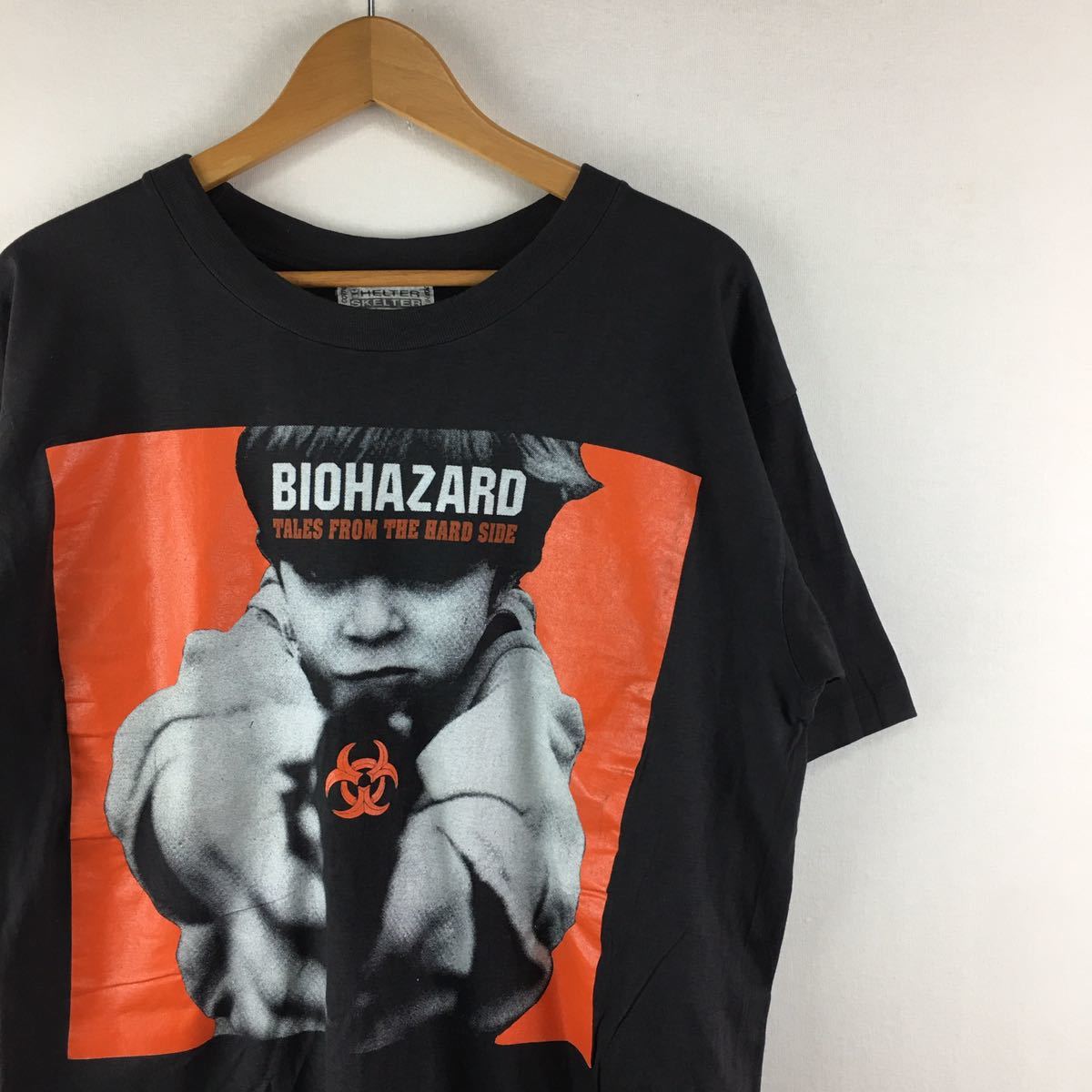 > ビンテージ 90s【BIOHAZARD】バンド Tシャツ ITALY製 L バイオハザード ロックT EU古着 NYHC ハードコア メタル フォト アートTシャツ 銃